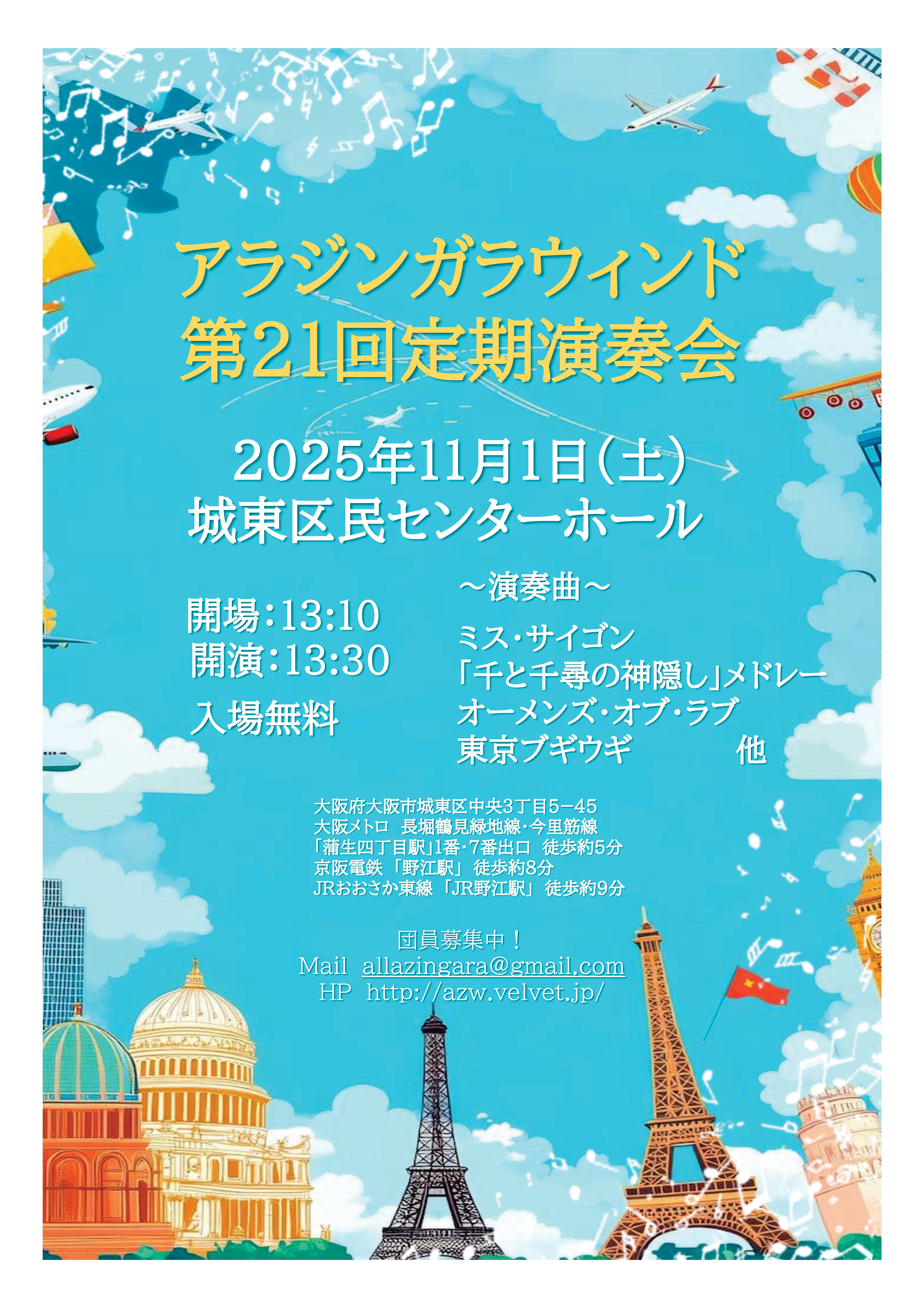 New! 第21回定期演奏会【無事に終了しました!過去最多、たくさんの方々にご来場頂き大盛況となりました。皆様本当にありがとうございました!】